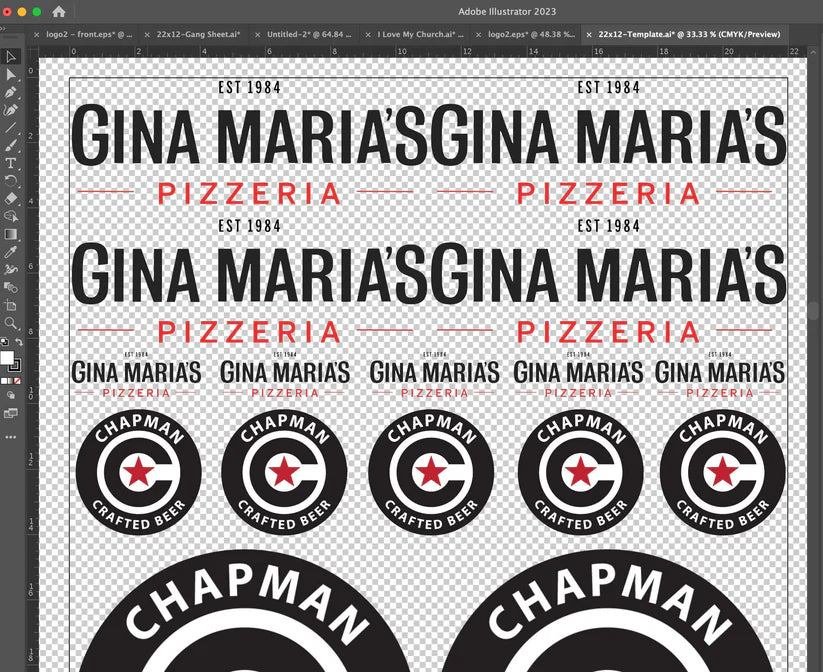 We can create your gang sheet for you. We will create it by placing multiple pre-made artwork images on your gang sheet.