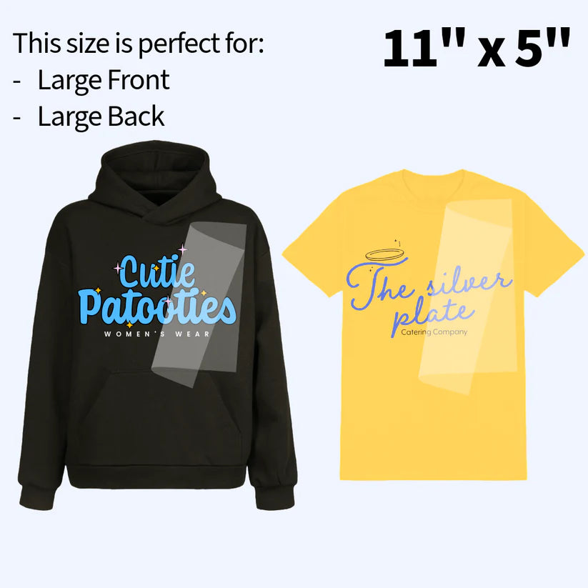 Choose from a variety of sizes to fit your project requirements. From small chest logos to full-front designs or oversized prints, our flexible sizing options ensure every detail of your artwork shines.